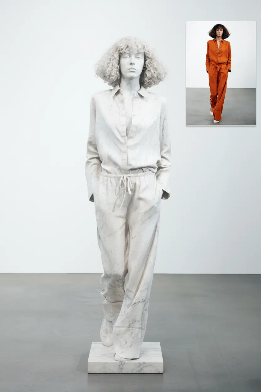 Prompt: “A photorealistic image of an ultra-detailed sculpture of the subject in image made of shining marble. The sculpture should display smooth and reflective marble surface, emphasizing its luster and artistic craftsmanship. The design is elegant, highlighting the beauty and depth of marble. The lighting in the image should enhance the sculpture's contours and textures, creating a visually stunning and mesmerizing effect.”